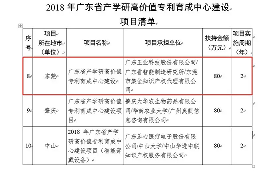 近日,正業(yè)科技成為廣東省產(chǎn)學(xué)研高價(jià)值專利育成中心建設(shè)項(xiàng)目建設(shè)單位之一,目前已開展項(xiàng)目建設(shè)相關(guān)工作,這是廣東省知識(shí)產(chǎn)權(quán)局對(duì)正業(yè)科技技術(shù)創(chuàng)新及專利管理能力的高度肯定和認(rèn)可。